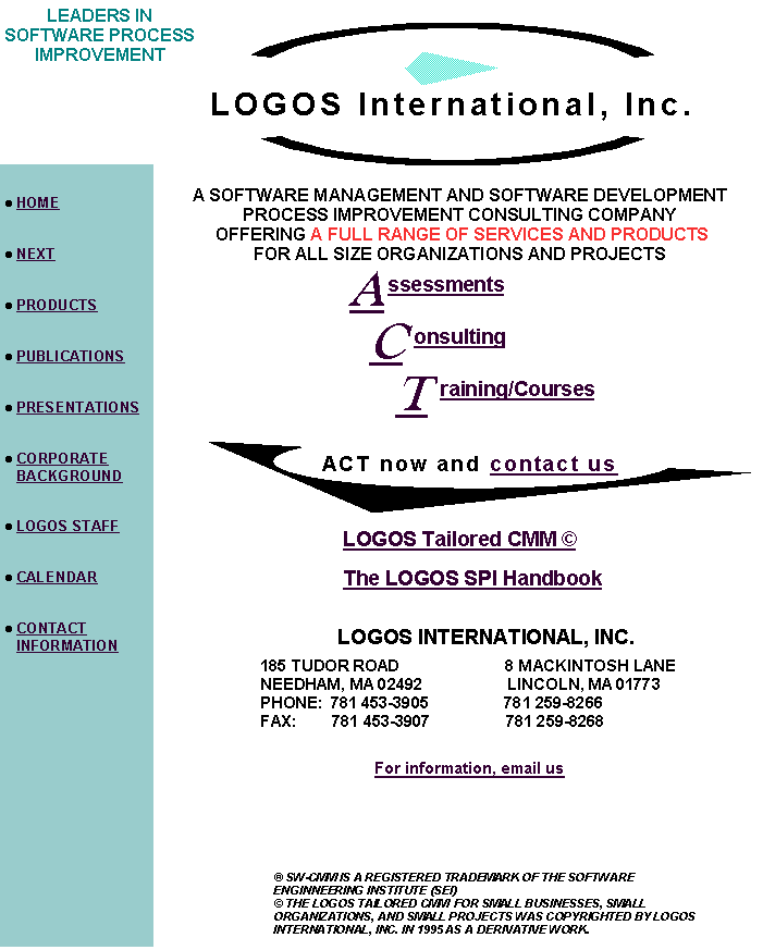 AddressLOGOS International, Inc. 8 Mackintosh LN Lincoln MA 01773 USA LOGOS International, Inc. 185 Tudor Road Needham, MA 02492 USA